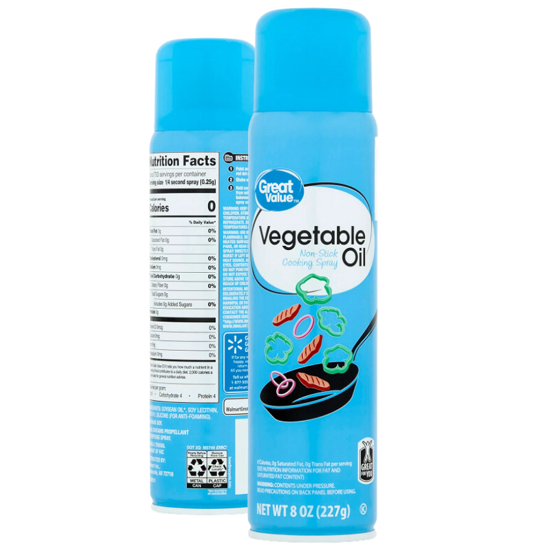 Great Value Original Cooking Spray đã được chế tạo đặc biệt để mang lại khả năng chống dính tối ưu và hiệu suất cặn ít hơn tới 99%. Thưởng thức một giải pháp nấu ăn ngon, không chứa chất béo thay thế cho các loại dầu khác có thể được sử dụng để nấu trứng, bánh kếp, bánh quế và bánh mì kẹp phô mai nướng, hoặc để nấu thịt, cá và rau trên bếp và lò nướng. Làm cho việc nấu ăn trở nên dễ dàng hơn một chút với Great Value Original Cooking Spray.