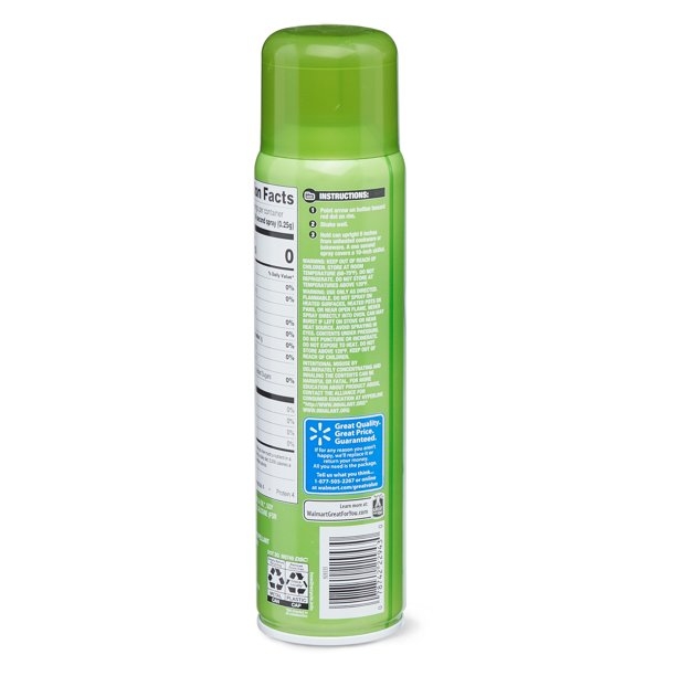 Xịt chống dính dầu hạt cải Great Value không có chất béo và 0 calo mỗi khẩu phần.