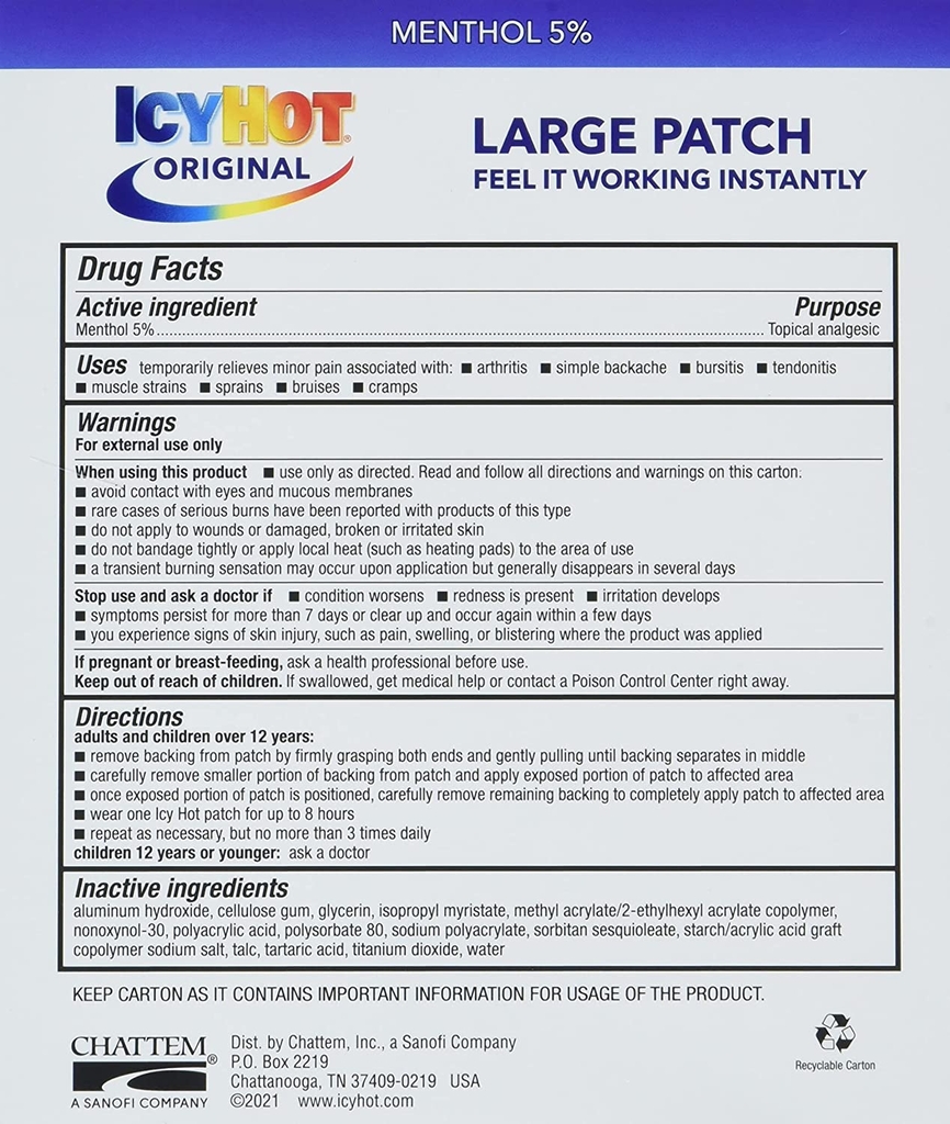 Icy Hot 5 miếng dán nóng giảm đau cỡ lớn