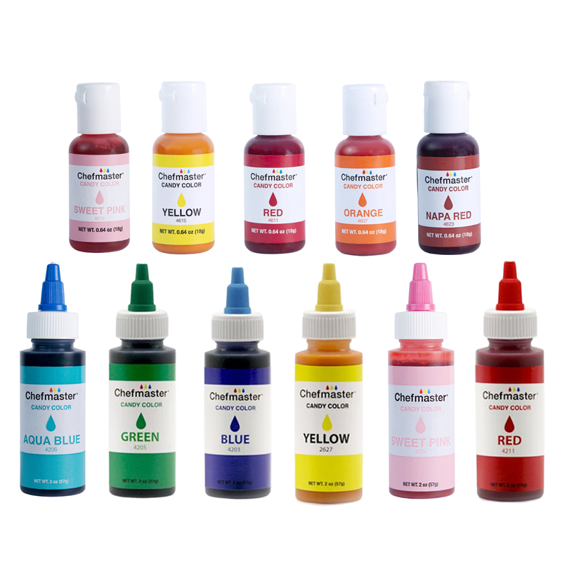 Màu dầu Chefmaster candy oil chuyên dụng làm kẹo chocolate Giống như đối tác Americolor, màu kẹo không gốc nước của Chefmaster được thiết kế để sử dụng với các loại thực phẩm gốc dầu như kẹo và sô cô la. (Bạn không thể trộn màu gốc nước với thực phẩm gốc dầu vì nước và dầu không trộn lẫn với nhau.) Chứng nhận kosher bởi United States K ở Los Angeles, California