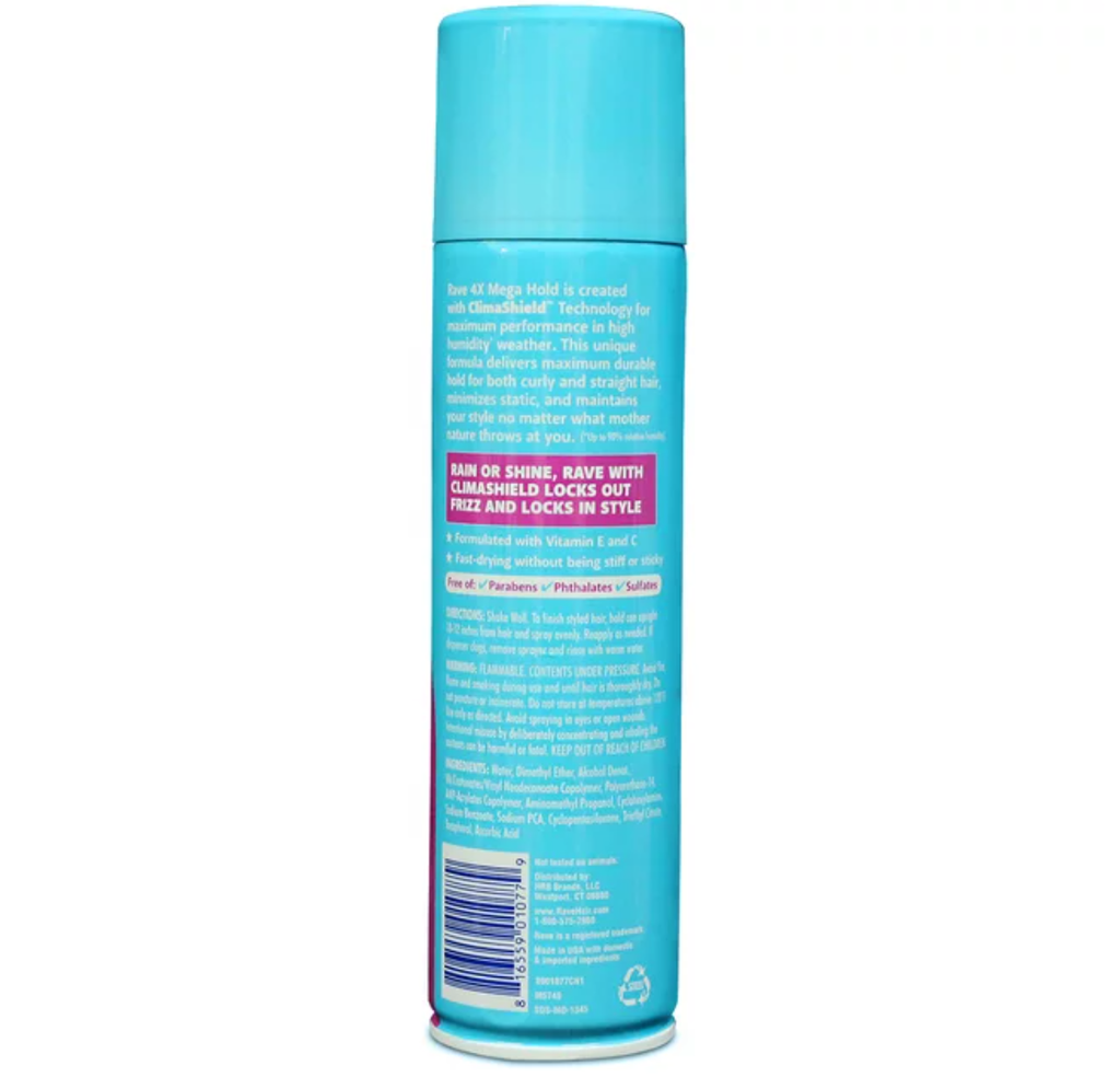 Kiểm soát kiểu dáng chắc chắn lâu dài: Keo xịt tóc không mùi RAVE 4x Mega mang đến khả năng giữ nếp đặc trưng mà bạn yêu thích kết hợp với công nghệ chống ẩm để giữ tóc cố định và kiểm soát phong cách của bạn.